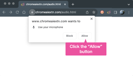 In case you closed the pop up shown below, just reload the screen and then click on the "Allow"